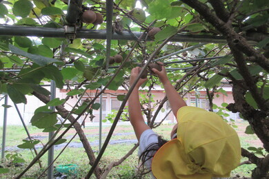 中芳養幼稚園の裏に畑があります。そこでは子供たちが、種まきや苗植えをした野菜や果物を育てています。