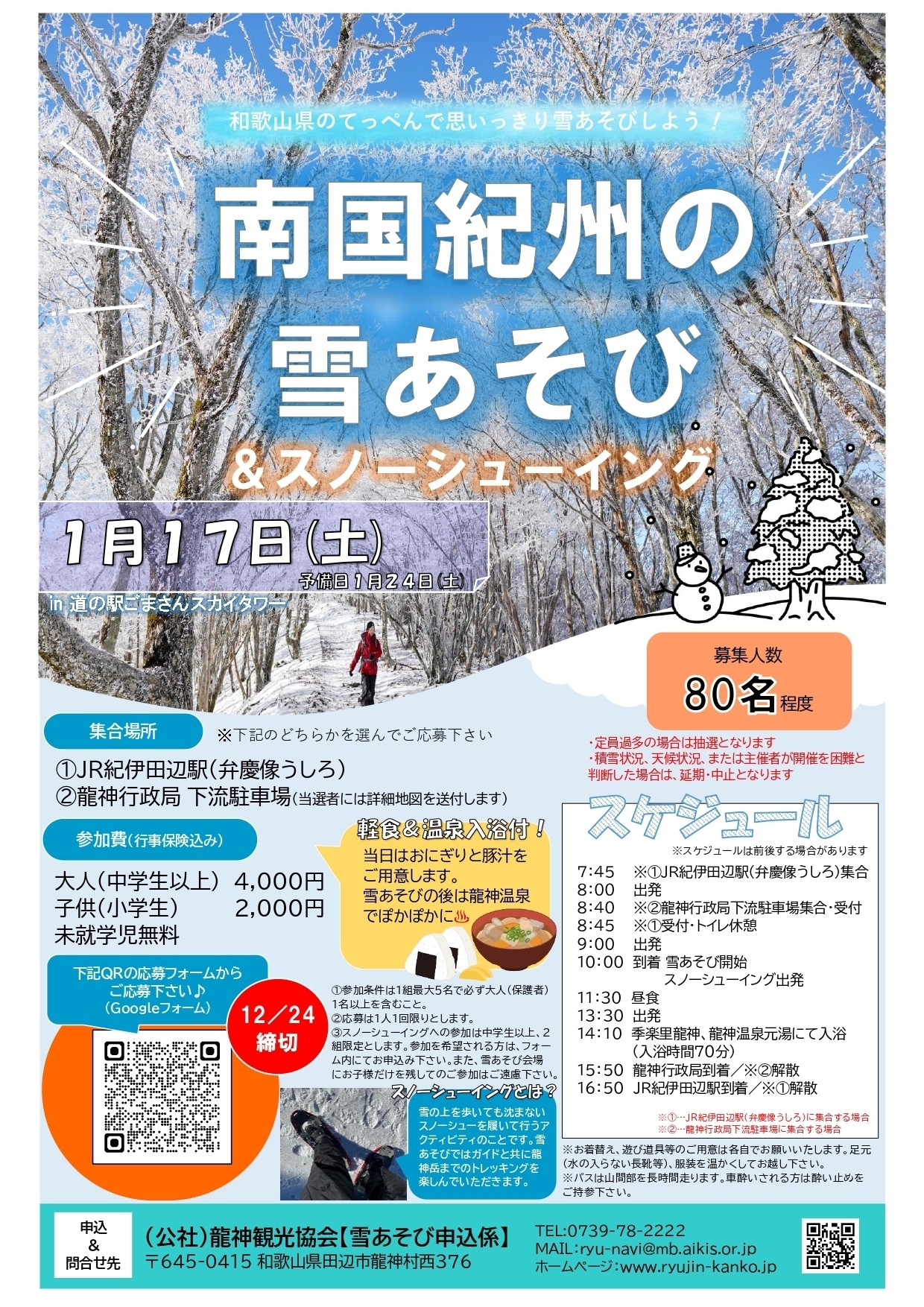 南国紀州の雪あそび スノーシューイング参加者募集について