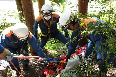 秋の行楽シーズンでは、ハイカーや山菜取りによる事故が多発します。また、山林作業者の事故にも備え、災害現場を想定し、円滑でスムーズな活動を行うため訓練を実施する。