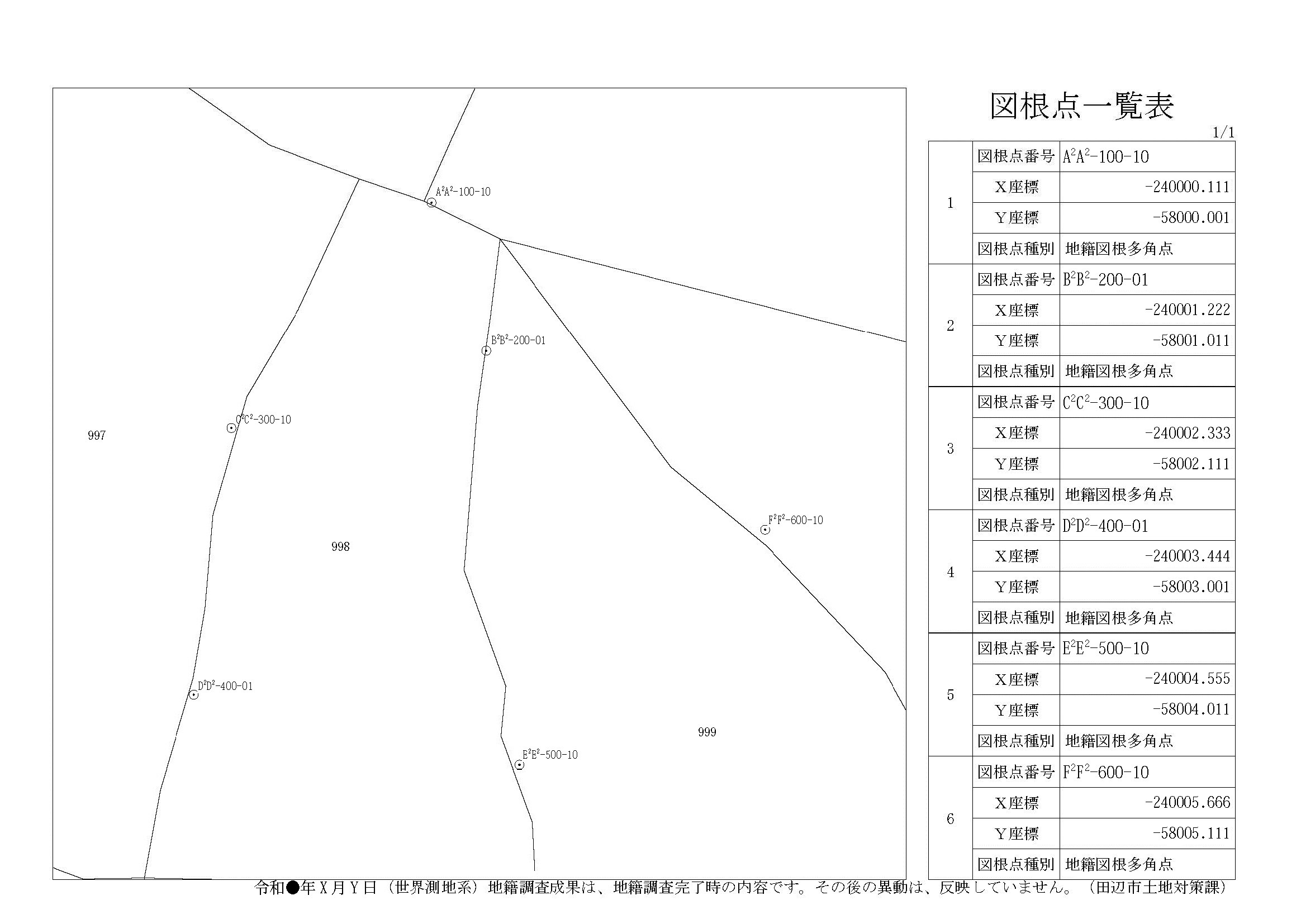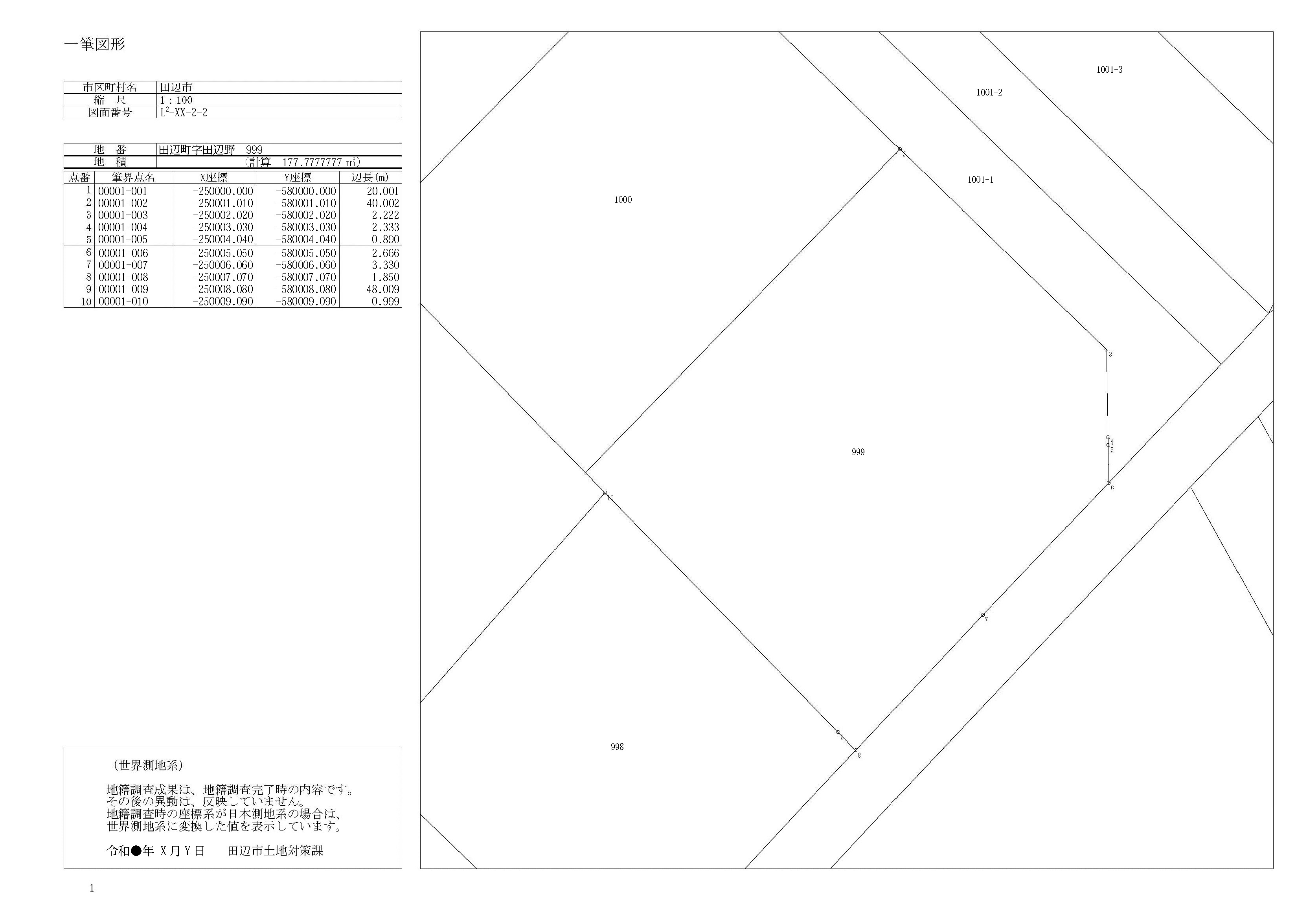 サンプルの字名・地番・点名・座標値等は全て架空のものです。