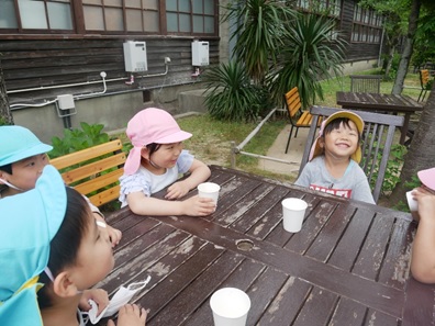 「みかんのジュース、おいしかったー」笑顔いっぱいです。