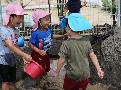 「お水 楽しい!」「一緒にジャンプしよう!」 友達と一緒に、大好きな遊びをいっぱいしました。