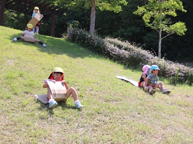 楽しみにしていた芝滑り。何度も滑って遊びました。
