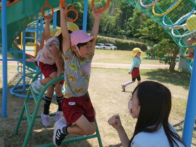 お気に入りの遊具 見つけた! 元気な声があちこちから聞こえてきて、子ども達は「また遊びたい」と幼稚園に帰ってきました。