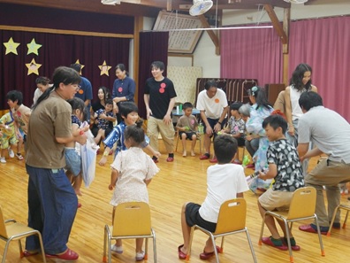 みんなでゲーム遊び「フルーツバスケット」をしました。子どもも大人もニコニコで大盛り上がりでした。