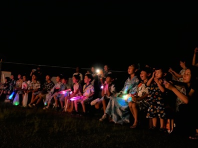 最後は吹き上げ花火です。「わー きれいー」と歓声がいっぱい。楽しい夜のひと時となりました。