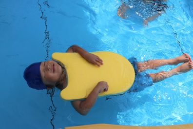 浮いて進むのはおもしろいです。みんな顔つけができるようになり、すっかり水にも慣れています。