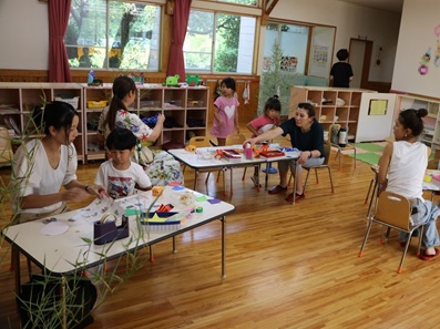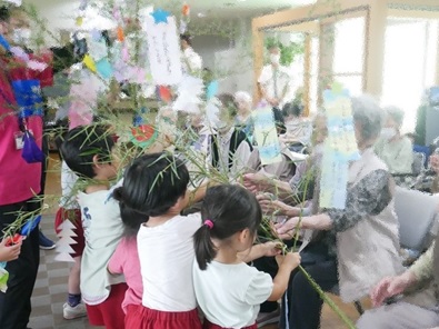 七夕の行事ではいろいろな人と関わり笹飾りを作ったり、交流したりできました。
