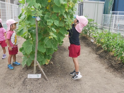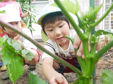 幼稚園で自分達で育てた野菜は特別で、ちょっと苦手な野菜も「○○して食べたよー」とうれしい報告があります。