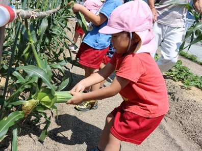 ポキッと とうもろこしの収穫です。