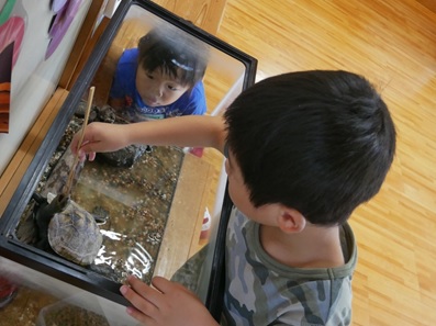 飼育しているカメです。金魚やメダカなどもいます。夏休みもお世話しています。
