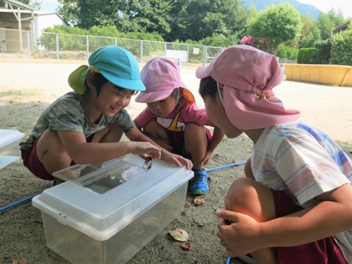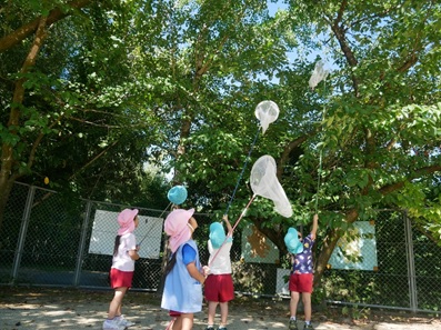 なかなかつかまえるのは難しかったですが、「やったー、とれた!」とお友達と喜んでいます。
