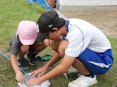 遊びの時間には、虫取り名人のお兄ちゃんと、バッタを次々とつかまえることができて、大満足!