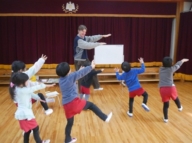 全身を使ってのアルファベットの表現と発音です。子ども達は大好きです。