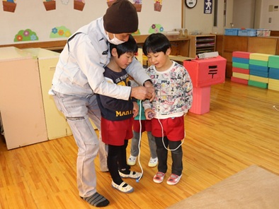 年少児が作ったすごろく遊びでは、新庄幼稚園の友達も一緒に遊びました。自分たちが考えて作ったすごろくをみんなでワイワイ言いながら遊べておもしろかったです。