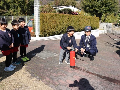 もしもの時に・・・実際に火災の避難訓練をして、消防士さんからいろいろと教えてもらいました。