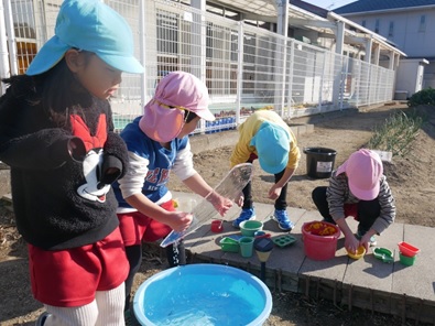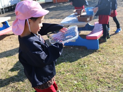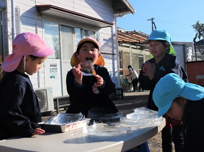 寒波で寒い日が続くと、冬ならではの遊びを楽しみました。