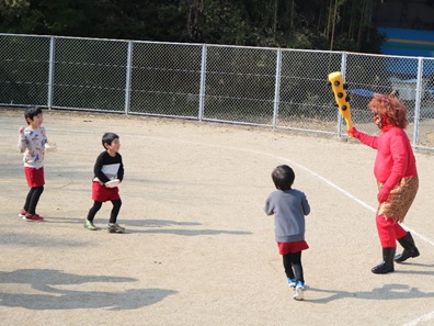 山から鬼がやってきて、始めはビックリしていましたが「鬼は外!」とたくさんの豆をまき、みんなの力で鬼を追い出すことができました。