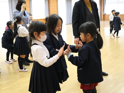 昔遊びでは1年生と6年生と一緒に遊びました。「こんなにするよ」と優しく教えてくれました。